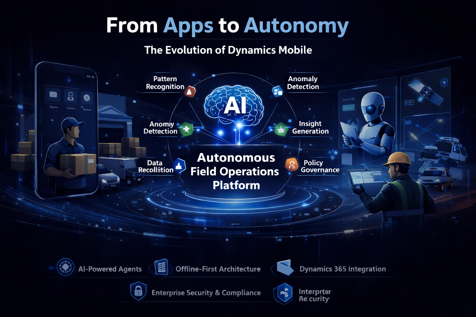 Today, Dynamics Mobile is more than mobile apps for field teams. It's an autonomous field operations platform — one where AI agents run continuously in the background, reconciling data, detecting anomalies, surfacing insights, and executing tasks within policy-defined guardrails. The mobile apps are still there. They're better than ever. But they're now part of something bigger.
